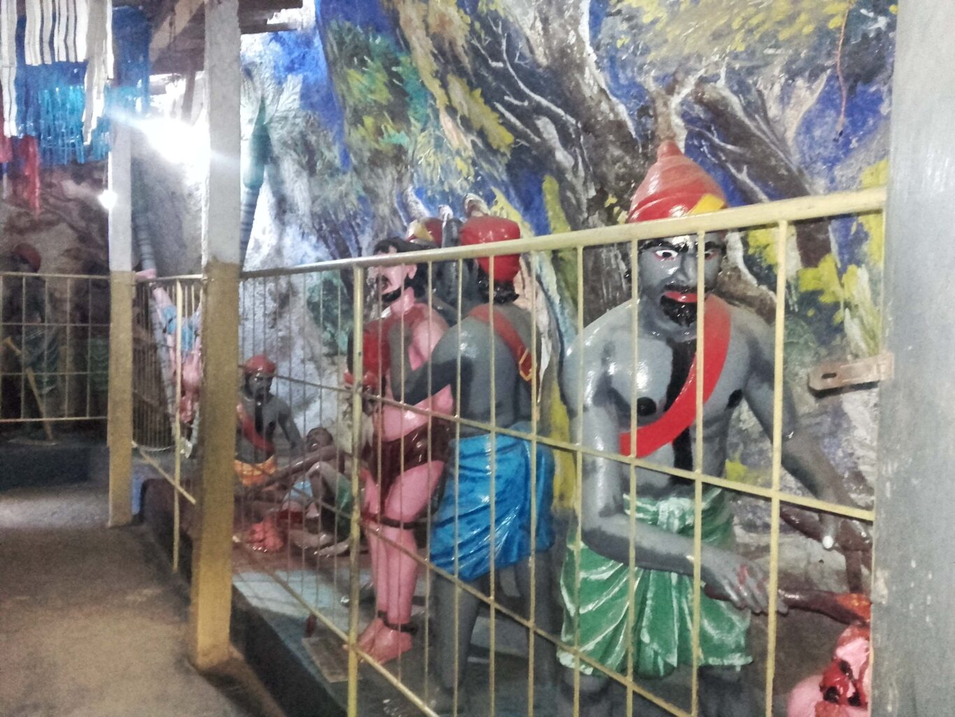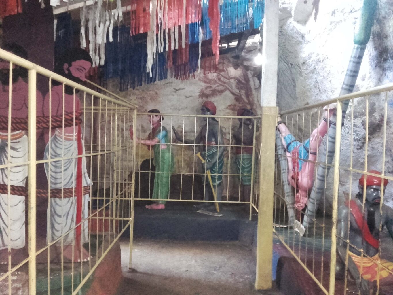 The entrance to the temple complex features a traditional Pandal, leading to stone steps that wind through the rock, connecting the different cave levels. A spiral stone staircase leads to the summit of one of the rock caves, where a sacred Bo Tree shelters an image house.